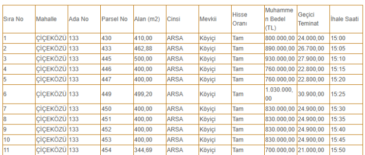 Arsaların en ucuzu 700 bin TL'den en pahalısı 1 milyon 390 bin TL'den ihaleye çıkacak