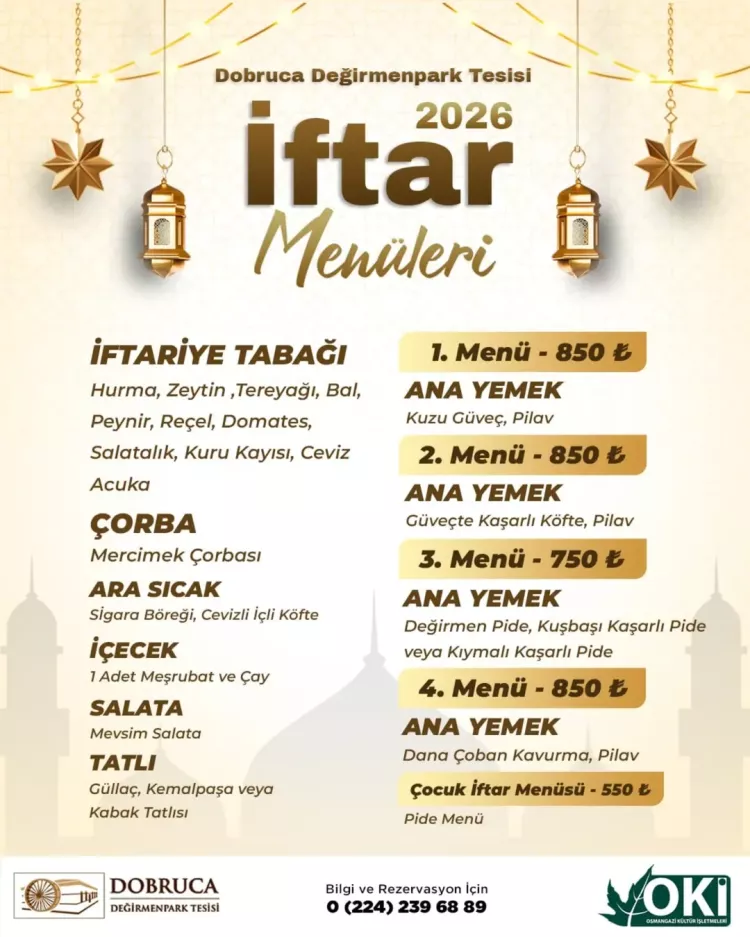 Osmangazi Belediyesi’ne bağlı Sümbüllü Bahçe Konağı ve Doburca Değirmenpark Tesisi tarafından paylaşılan iftar menülerinde fiyatların 750 TL ile 850 TL arasında değiştiği görüldü.