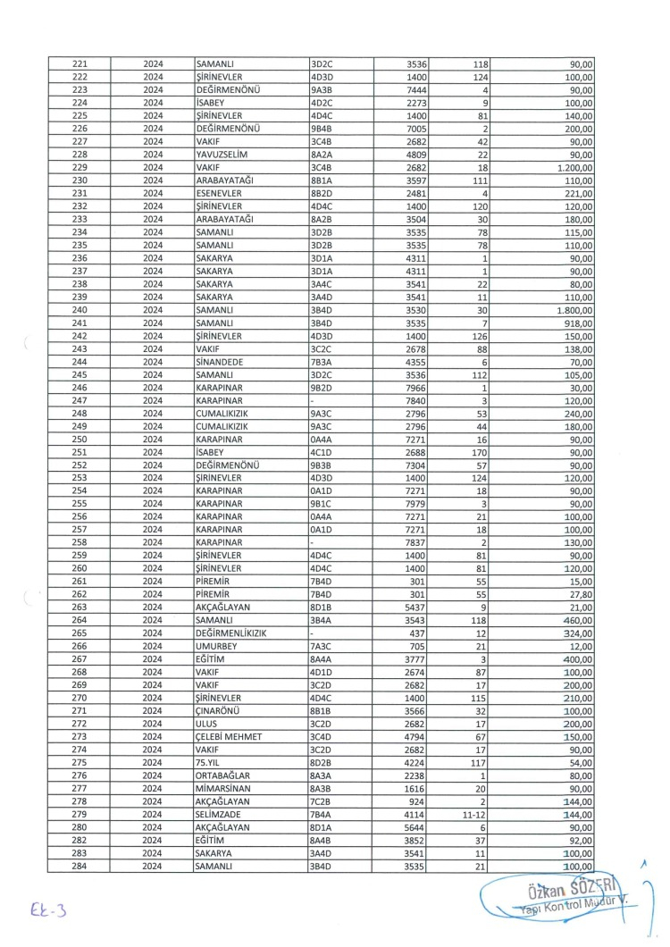 Kaçak ve imarsız yapların, Hacivat, Şükraniye, Karaağaç, Vakıf, Samanlı, Esenevler, Cumalıkızık, Duaçınarı, Sakarya, Balaban, Şirinevler, Değirmenönü, Arabayatağı, Eğitim, Akçağlayan, Selimzade, Ortabağlar, Mimarsinan, 75. Yıl, Çelebi Mehmet, Ulus, Çınarönü, Umurbey, Değirmenlikızık, Piremir, Karapınar, İsabey, Sinandede, Yavuzselim, Vakıf, Mollaarap, Fidyekızık, 152 Evler, Ertuğrulgazi, Kazımkarabekir, Beyazıt, Sıracevizler, Maltepe, Çelebi Mehmet, Musababa, Selçukbey, Bağlaraltı ve Erikli mahallelerinde olduğu bildirildi.