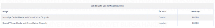 Muradiye Devlet Hastanesi (62 araç) ile Şevket Yılmaz Devlet Hastanesi (200 araç) civarı cadde otoparkları ise ilk 1 saat ücretsiz, gün boyu ise 80 TL olarak hizmet verek.