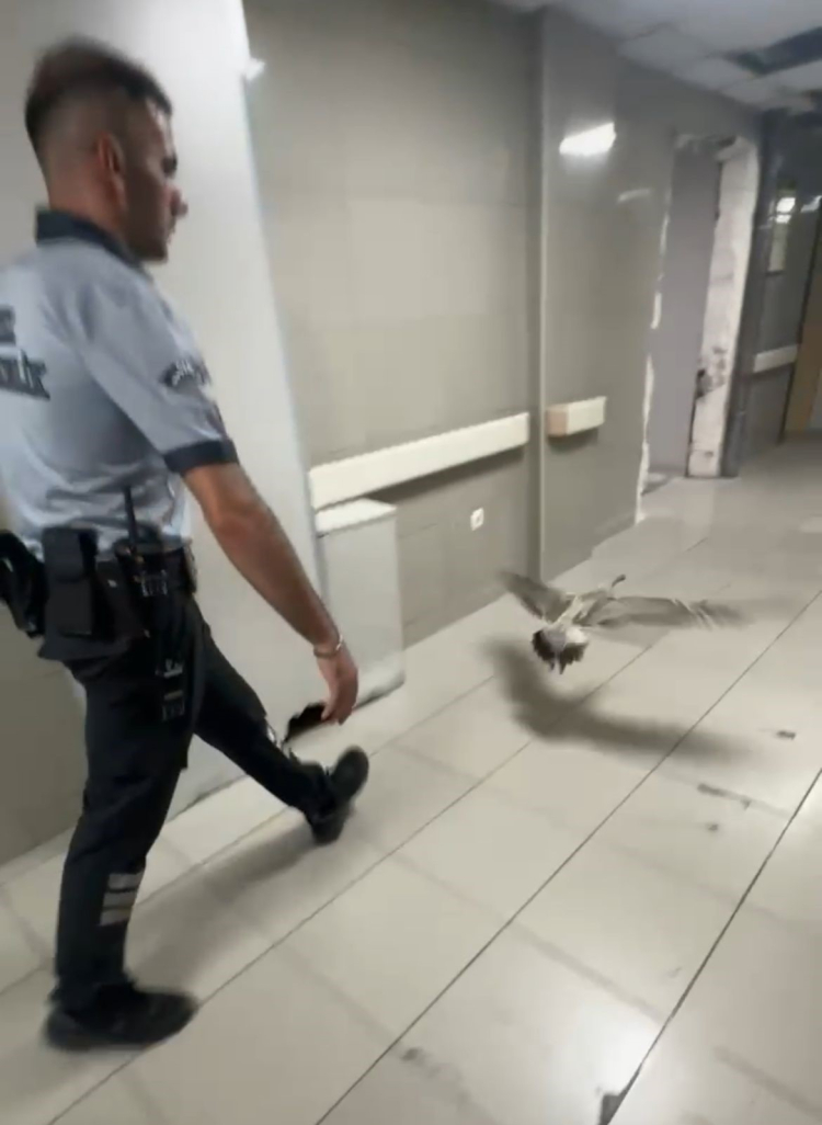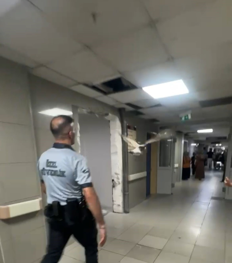 Bir süre vatandaşların şaşkın bakışları arasında "acil uçuş" yapan martı, güvenlik görevlisini de epey terletti. Hastane içinde köşe bucak kaçan martı, sonunda yakalanınca "acil servisteki en hızlı vaka" olarak kayıtlara geçti.
