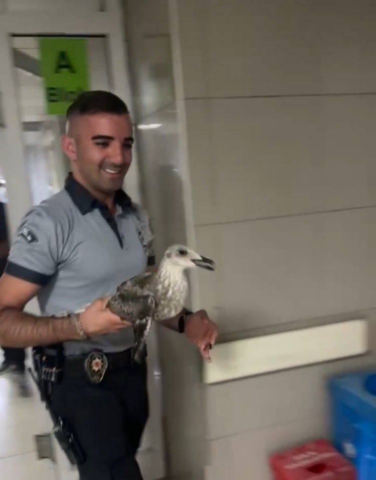 Yaşanan renkli anlar, vatandaşların yüzünü güldürürken martı, güvenlik görevlisinin ellerinden yeniden özgürlüğe kanat çırptı.