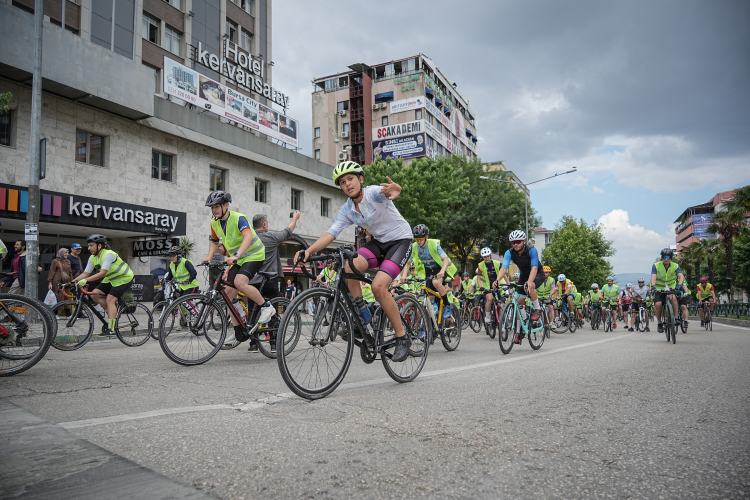 Bursa'da bisikletliler, farkındalık için pedal çevirdi