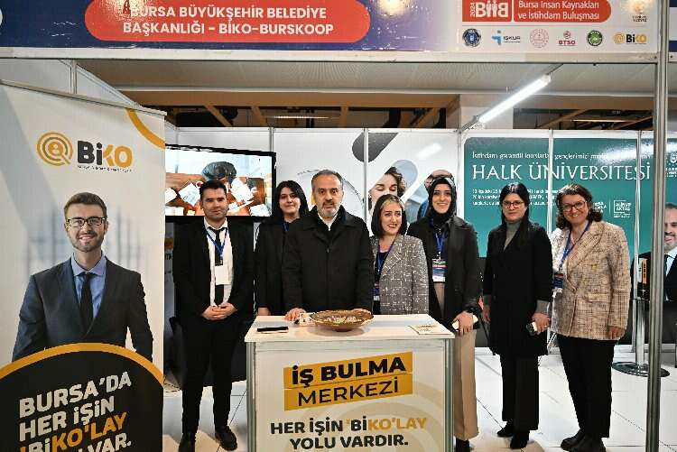 Bursa Büyükşehir Belediyesi’nin destekleriyle, Çalışma ve İş Kurumu İl Müdürlüğü, İl Milli Eğitim Müdürlüğü, Bursa Ticaret ve Sanayi Odası (BTSO), Bursa Kent Konseyi (BKK) ve Bursa İstihdam ve Kariyer Ofisi (BİKO) iş birliğinde bu sene 7’ncisi düzenlenen BİİB, sektörün ihtiyaç duyduğu insan kaynağını firmalarla buluşturdu. 274 firmanın katılımıyla Türkiye’nin alanında en büyük istihdam buluşmalarından birisi olan organizasyonda stantları tek tek gezen Bursa Büyükşehir Belediye Başkanı Alinur Aktaş, firma temsilcileri ve iş arayanlarla sohbet etti.