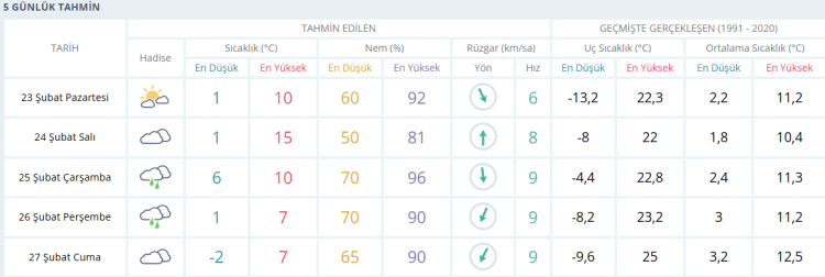 BURSA'DA 5 GÜNLÜK HAVA DURUMU TAHMİNİ
