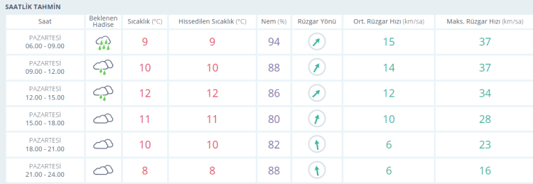 İŞTE BURSA İÇİN SAATLİK HAVA DURUMU TAHMİNİ (30 MART 2026)