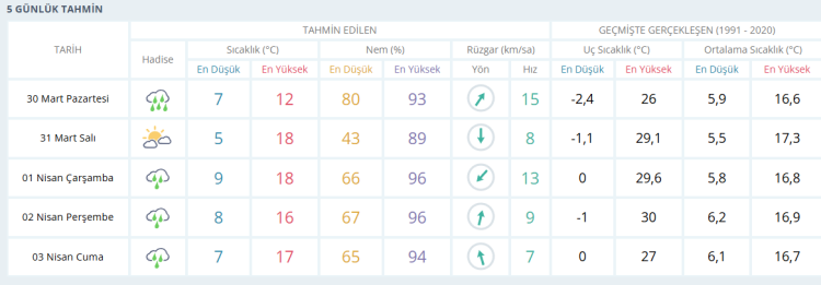 BURSA'DA 5 GÜNLÜK HAVA DURUMU TAHMİNİ