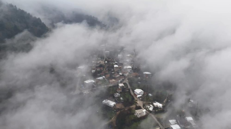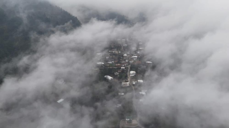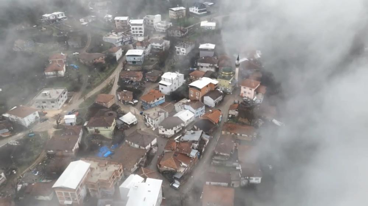 Bulutlar arasında olan Gökçeören adeta Trabzon yaylalarını andırdı.