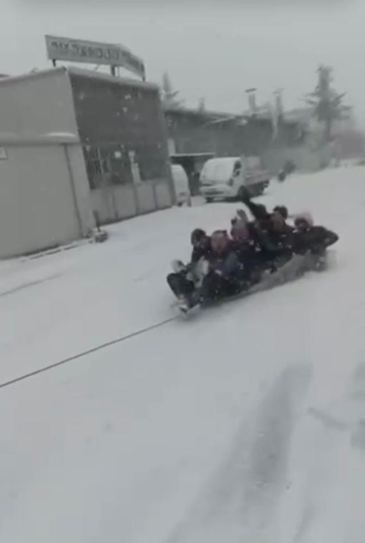 Öte yandan Yıldırım ilçesi Otosansit sanayi bölgesinde de esnaflar kendilerine oto sanayide kızak yaparak keyif yaptılar.