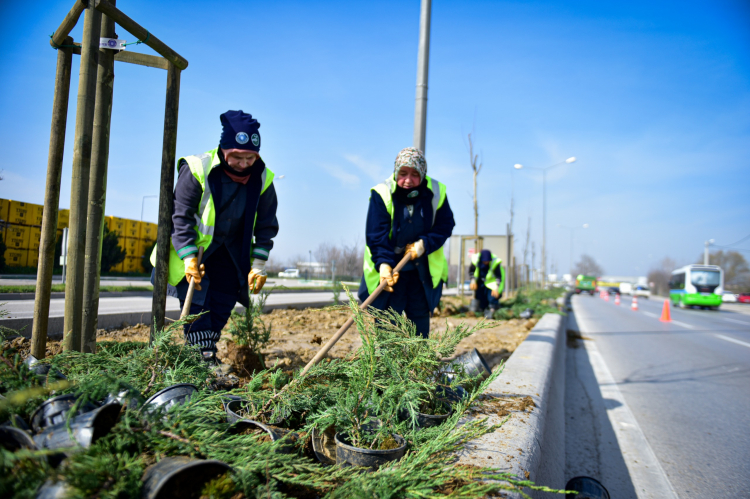 Bursa Büyükşehir Belediyesi, cadde ve bulvarlardaki refüjlerde yaptığı peyzaj düzenlemeleriyle Bursa’nın yeşil kimliğini güçlendiriyor.