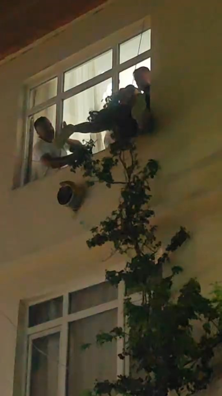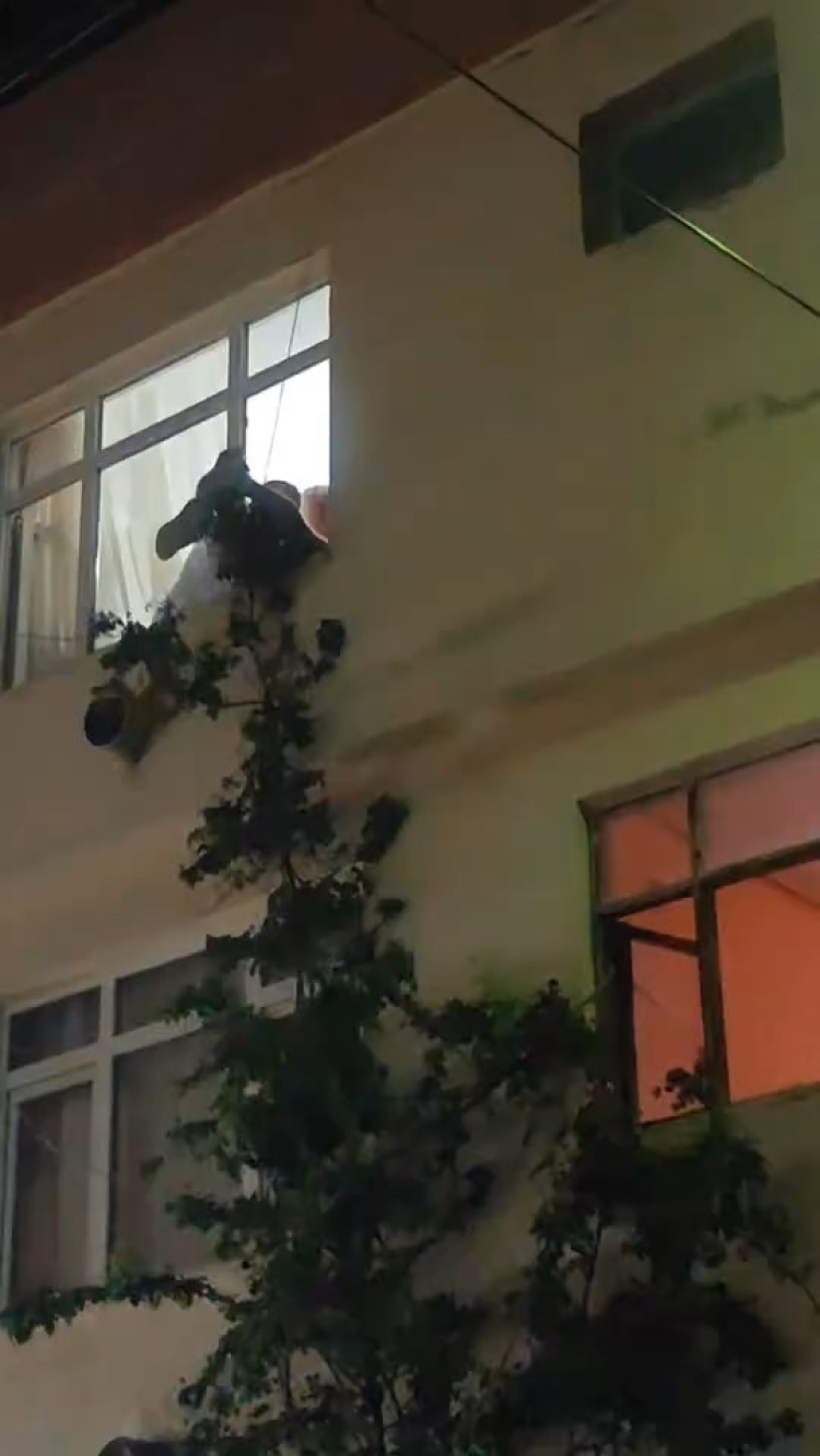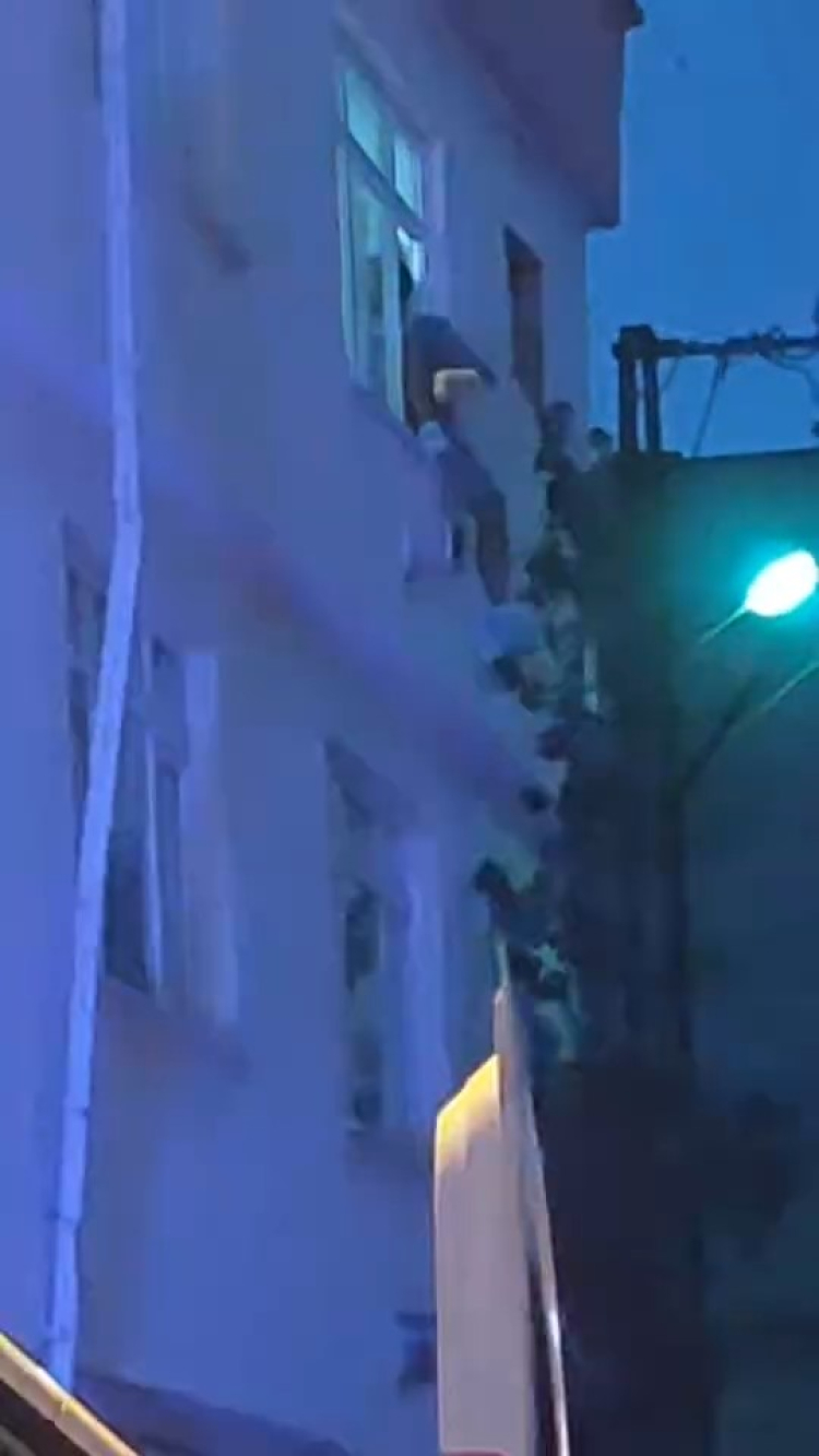 Bursa'da camdan sarktı ikna edilemeyince müdahale edildi