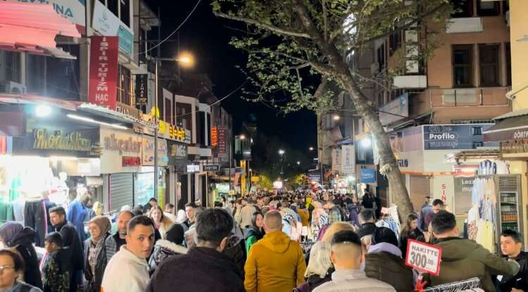 Bursa'da Ramazan Bayramı'na sayılı günler kala çarşılarda yoğunluk yaşandı. İftar sonrası da yoğunluk devam ederken o anlar kameraya yansıdı.