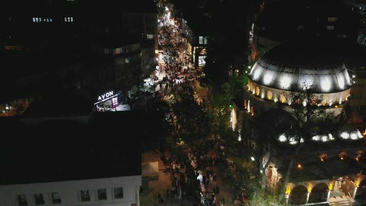 Polis ekiplerinin müdahalesiyle tansiyon düşerken, iftar sonrası çarşı merkezindeki yoğunluk havadan da görüntülendi.