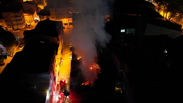 İtfaiye ekiplerinin müdahalesiyle yangın, çevredeki binalara sıçramadan söndürüldü.