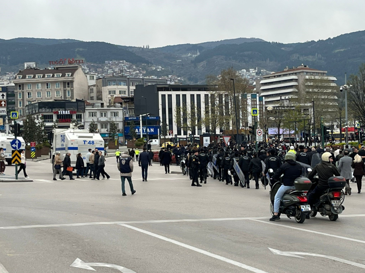 Bursa Büyükşehir Belediye Meclisi'nde yapılması planlanan Meclis Başkan Vekili seçimine katılmayan CHP'li meclis üyeleri, belediye başkanları ve milletvekilleri, Ankara Caddesi üzerinde eylem yaptı. Yaklaşık 200 kişilik grubun yolu trafiğe kapatması üzerine çevik kuvvet ekipleri müdahalede bulunurken, zaman zaman arbede yaşandı.