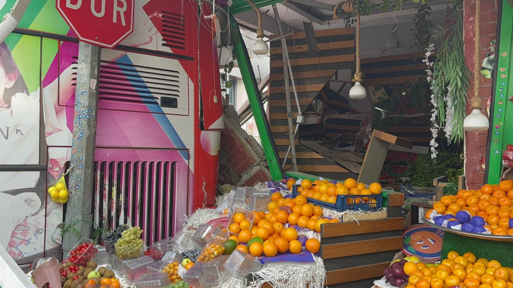 Bursa'da çift katlı otobüs, otomobil ile manav dükkanına çarptı!