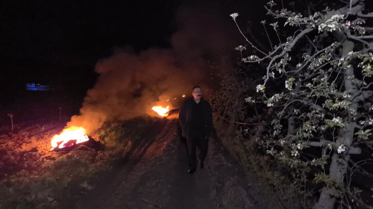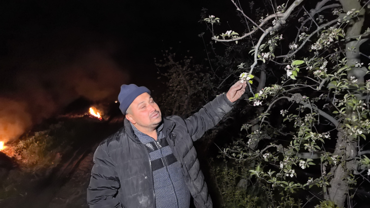 Elma bahçesinde ateş yakan bahçe sahibi Ahmet Kocaçepel,"Geçtiğimiz akşam bahçelerimiz hasar gördü. Kalan çiçekleri de korumak için böyle bir yöntem yaptık. Eski bir gelenektir zaten ateş yakmak" dedi.