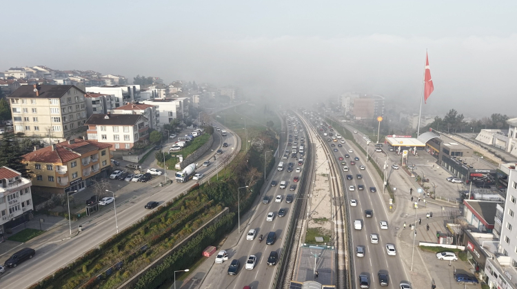 Yoldan geçen bazı sürücüler, sol şeritte aniden karşılarına çıkan araç nedeniyle yavaşlamak zorunda kalırken, trafikte kısa süreli karmaşa yaşandı.