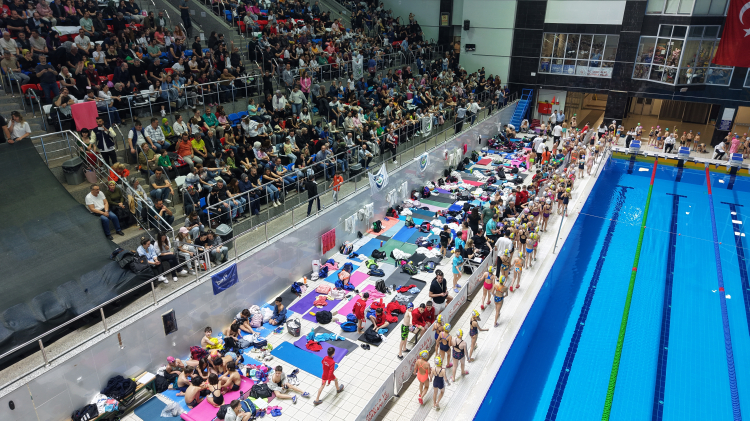 Bursa'da, 23 Nisan Ulusal Egemenlik ve Çocuk Bayramı şenlikleri kapsamında Osmangazi ilçesinde bulunan Atıcılar Spor Kompleksi'nde bir araya gelen 17 kulüpten toplam 450 çocuk sporcu, 23 Nisan Ulusal Egemenlik ve Çocuk Bayramı’nı, 50 metrelik olimpik havuzda düzenlenen yarışmalara katılarak kutladı.