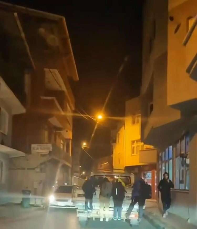 Bursa’nın Osmangazi ilçesi Merinos Mahallesi üzerinde açık kasa bir kamyoneti gören çocuklar, aracın kasasına tutundu.