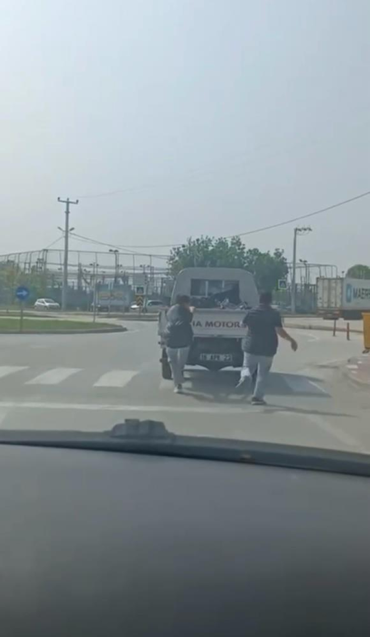 O anları gören diğer sürücüler, kamyonet sürücüsünü korna ile uyarsa da sonuç alamadı.