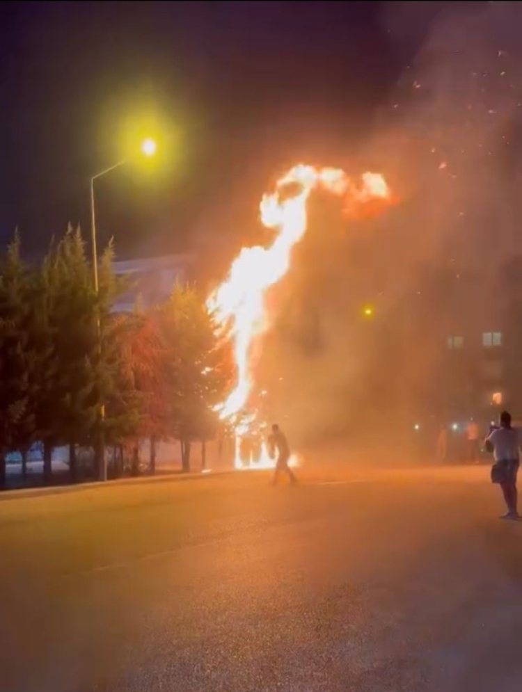 Rüzgarın da etkisiyle alevler kısa sürede büyüyerek çevredeki ağaçlara sıçradı. Siyah dumanlar mahalleye yayıldı, korku dolu anlar yaşandı.