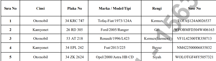 Öte yandan satışa sunulacak araçların marka/model ve rengi gibi özellikleri de ihale üzerinden belirtildi.