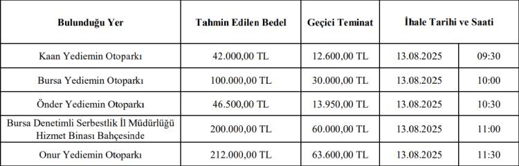 İhaleye katılım tarihi ise 13 Ağustos 2025 olarak belirtildi.