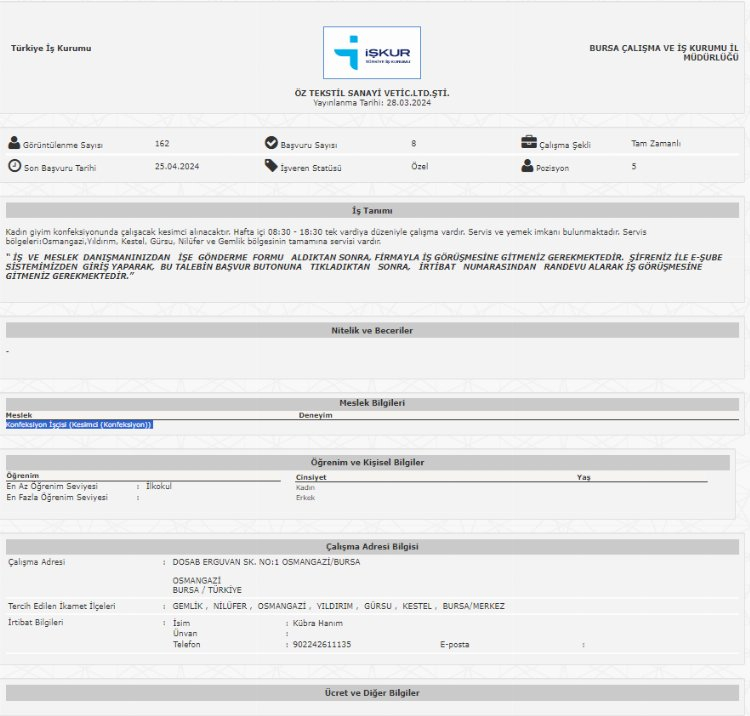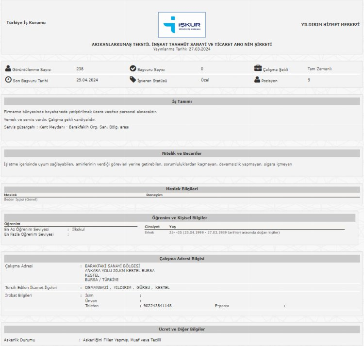 İŞKUR üzerinden yayınlanan personel-işçi alım ilanlarına da her gün bir yenisi ekleniyor. Bursa'da birçok firma onlarca işçi alacağını duyurdu. İşte o şirketler ve ilan detayları...