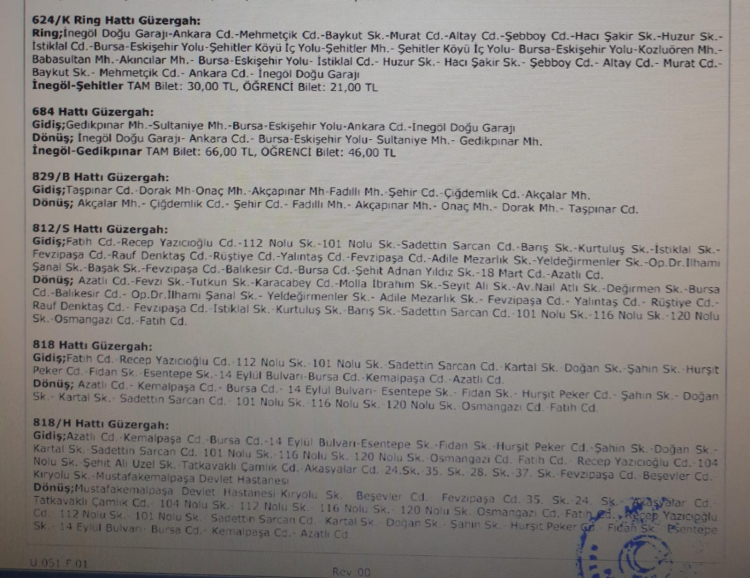 Ring; inegöl Doğu Garajı-Ankara Cd.-Mehmetçik Cd.-Baykut Sk.-Murat Cd.-Altay Cd.-Şebboy Cd.-Hacı şakir Sk.-Huzur Sk.-