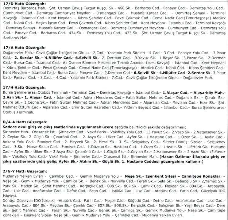 Bursa'da çok sayıda otobüsün güzergahı değişti!