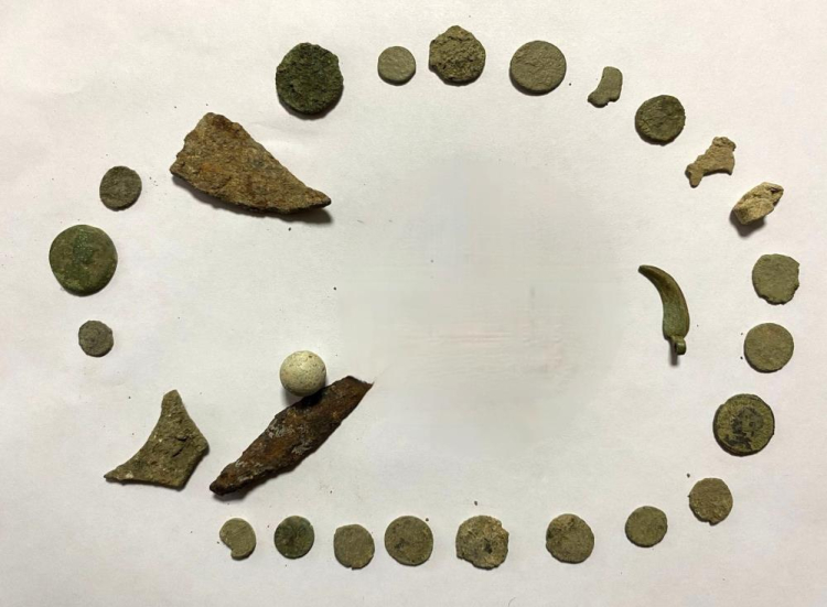Sürücü S.C.(46) yönetimindeki araçta arama yapan ekipler, 27 adet tarihi eser olduğu değerlendiren sikke ve obje ele geçirildi.