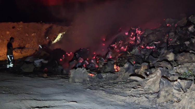İlçeye bağlı Hamamlı Mahallesi'ndeki çöplükte bulunan ağaç kütüklerinde henüz bilinmeyen nedenle yangın çıktı.