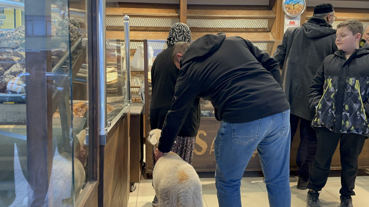 Bursa'da 'Çorap' adlı kuzu sahibiyle ile pide sırasına giriyor