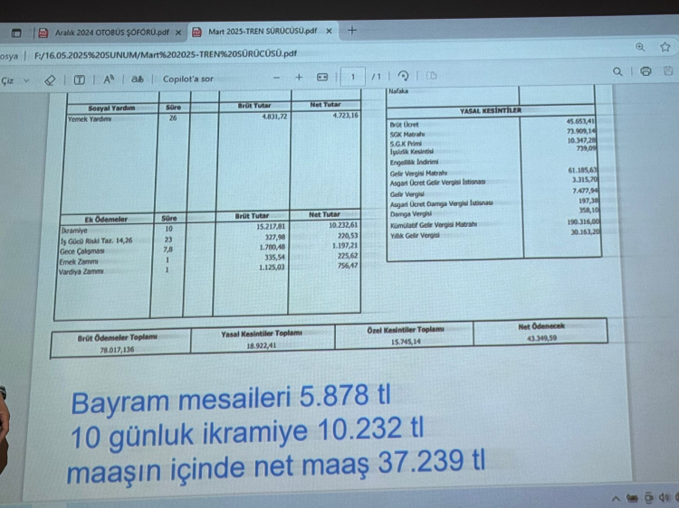 Otobüs ve tren sürücüsünün maaşı ikramiye ile birlikte 43.500 TL'dir. Ülkemizdeki enflasyon ve alım gücü ortadadır. Biz gerçekçi bir zam istemeyelim mi?