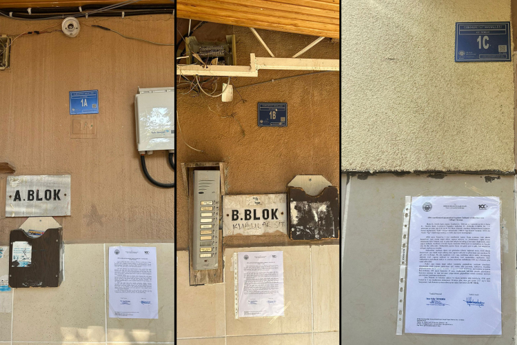 Cumhuriyet mahallesi 431. sokakta yer alan No:1 A, No: 1 B ve No: 1 C adreslerindeki 3 yapınn kapısına tebligat yapıştırıldı.