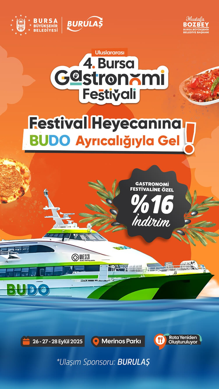 “Bursa’nın en önemli buluşma noktalarından biri olacak Gastronomi Festivali’ne ulaşımı kolaylaştırmak için BUDO seferlerimizde özel indirim imkânı sağlıyoruz. Hem festival heyecanını desteklemek hem de misafirlerimizi konforlu ve güvenli şekilde şehre ulaştırmak bizim için büyük mutluluk.”