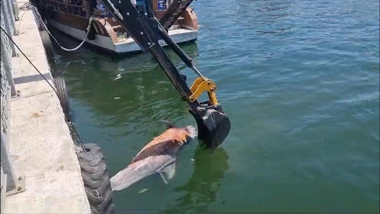Yetkililer, yunusun deniz yüzeyine çıkarılması için Deniz Polisi'nden yardım istedi. Yaklaşık 3 metre boyunda ve erkek olduğu tahmin edilen yunus, dalgıç polislerin yaptığı çalışmanın ardından kıyıya çıkarıldı.