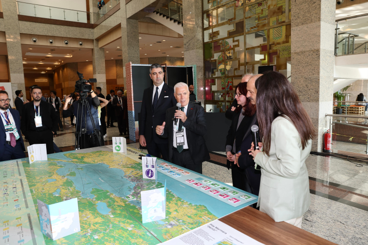 MARUF’25 kapsamında düzenlenen ‘Play Marmara Denizi’ etkinliğine de katılan Başkan Mustafa Bozbey, oyunu Gebze Belediye Başkanı Zinnur Büyükgöz ve Kartal Belediye Başkanı Gökhan Yüksel ile birlikte oynadı. 'Temiz Üretim, Yenilikçi Uygulamalar' kartını seçen Başkan Mustafa Bozbey, “Marmara Denizi'ne sahip çıkmalıyız. Marmara'nın etrafında yoğun sanayi yapılanması var. Buna bağlı olarak da 30 milyonun üzerinde bir nüfus Marmara Bölgesi’nde yaşıyor. Bu da Marmara Denizi'ne inanılmaz bir kirlilik yükü getiriyor. Bunu önlemenin yolu, Marmara’ya kıyısı olan tüm belediyelerin İleri Biyolojik Arıtma tesisi kurmasından geçiyor. Böylece Marmara Denizi’ne arıtılmış sular salınmış olacak. Marmara Denizi’ni, tüm ülke olarak el ele vererek kurtarmalıyız” dedi.