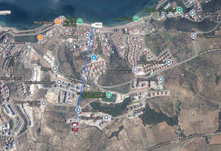 Tek parsel halinde satışa sunulan taşınmaz, Mudanya’nın en değerli bölgelerinden biri olarak gösteriliyor.