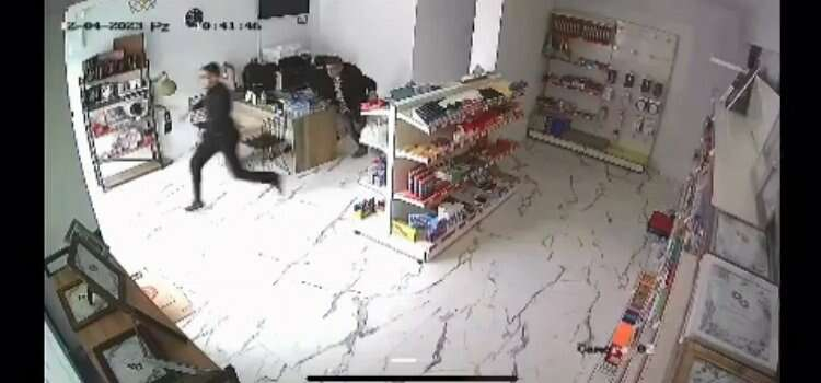Diğer yandan, bir züccaciye dükkanında raflarda bulunan malzemelerin deprem anında sallanması da güvenlik kameralarına yansıdı.