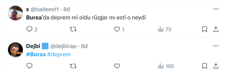 Bursa'da birçok ilçede hissedilen bir deprem meydana geldi.