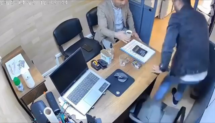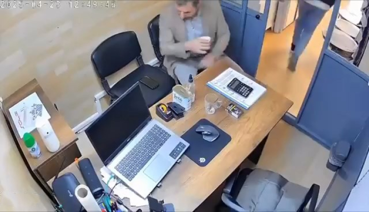 Müşterisi ise çay ve cep telefonunu alarak dışarı kaçınca görüntüler sosyal medyada ilgi çekti.