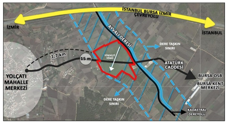250 bin sosyal konut projesi kapsamında Bursa'nın Nilüfer ilçesine bağlı Yolçatı mahallesinde Ayvalı Deresi kenarında inşa edilen TOKİ konutları için hazırlanan imar planı değişiklikleri askıya çıkarıldı.