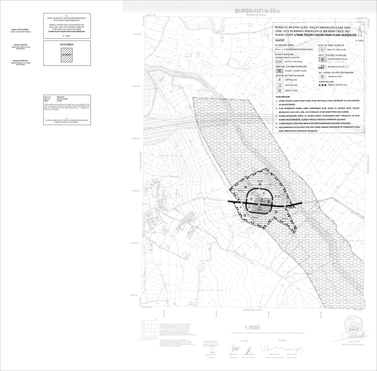 Yayımlanan plan açıklama raporuna göre, 1505, 1506 ve 1512 numaralı parseller ile tescil dışı alanları kapsayan çalışma, 1/25.000 ve 1/5000 ölçekli nazım plan değişiklikleri ve 1/1000 uygulama imar planı olarak hazırlandı ve 3194 sayılı İmar Kanunu uyarınca Bakanlık tarafından onaylandı.