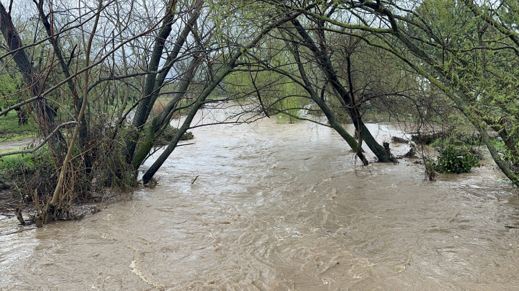 Yağmurla birlikte derelerdeki su seviyesinin artmasına sevinen ilçe halkı, taşkın riskine karşı teyakkuza geçti.
