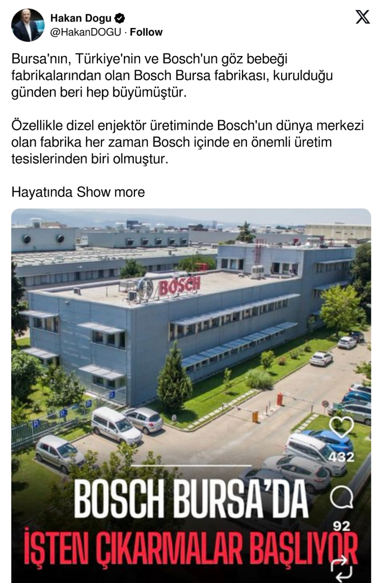 Şu ana kadar Bosch cephesinden iddialara ilişkin resmi bir doğrulama yapılmadı. Ancak ortaya atılan bu iddialar Bursa sanayisi ve otomotiv sektörü açısından büyük yankı uyandırdı.