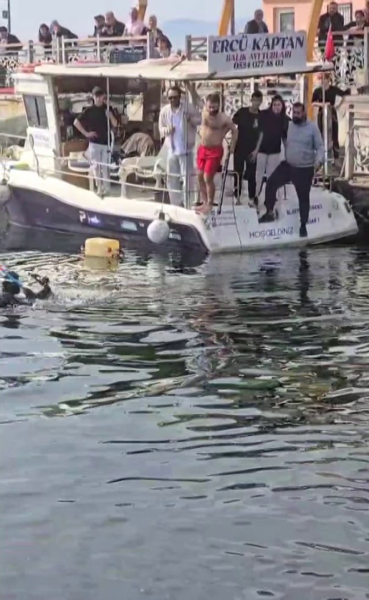 Bursa’da Gemlik Körfezi’nde avlanan balıkçılar 68 kilo ağırlığındaki orkinos balığını yakaladı. Dev balık balıkçılara direnirken kaçmaya çalışmasıyla tekneyi salladı. Balıkçıların tekneyle yaptığı takip sonrası orkinos balığı yaralı olarak tekneye alındı. O anlar kameralara saniye saniye yansıdı.