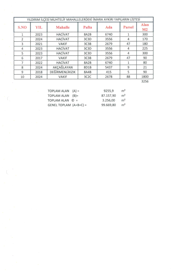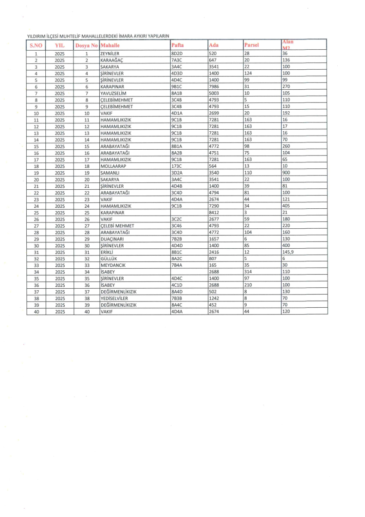 İşte Yıldırım Belediyesi'nin yıkım listesi...