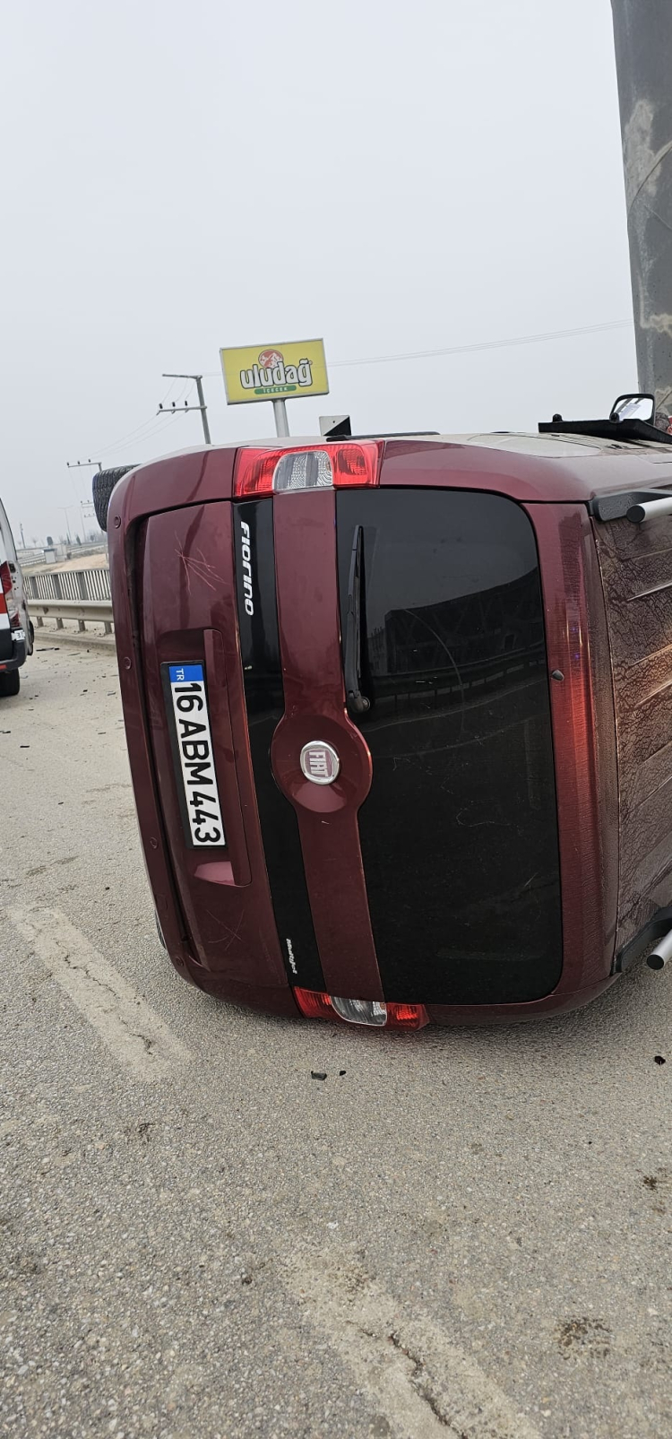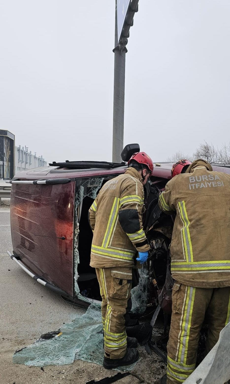 Bursa'da devrilen hafif ticari araçtaki 2 kişi yaralandı